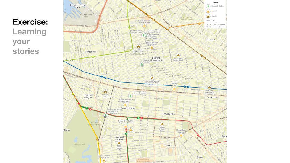 Building on this framework, the activity encouraged students to make personal connections to land and space by mapping their own spatial stories. Using tracing paper over the map, they marked landmarks, labeled them with their significance, and traced familiar routes, answering prompts about their daily routines, Sunday activities, and potential tours they’d give of Brooklyn. The exercise sparked enthusiasm and engagement, with students eagerly sharing their stories and reflecting on the places that hold personal significance in their lives.