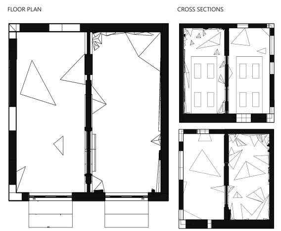 Using the five, 12 by 12 boxes, a separation of work and living space were created. The exhibit faces the street for easier access to guests, while the bedroom in the back proviedes isolation. A large kitchen was important for dietary needs and entertaining.
