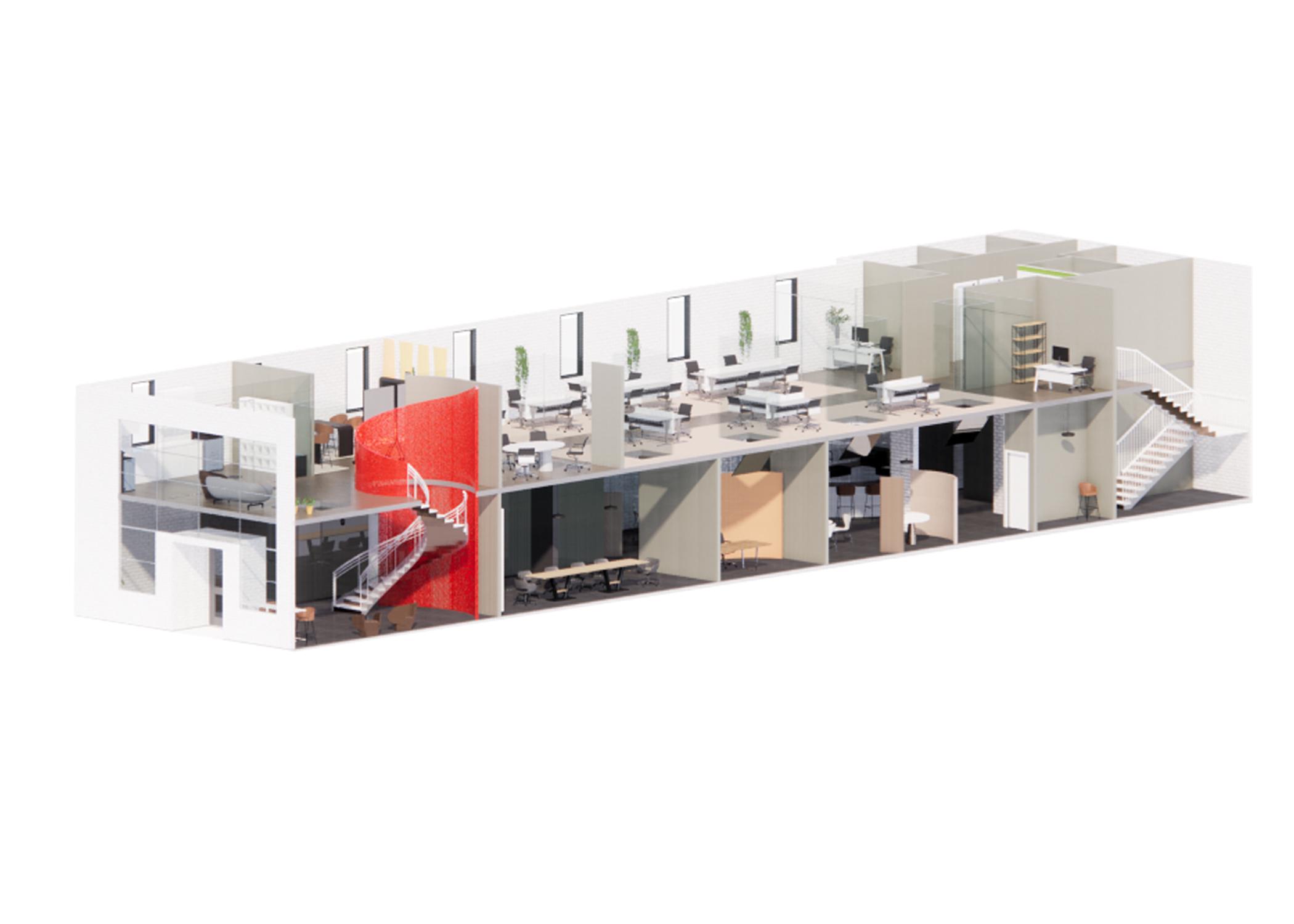 Using an existing 8,000 sqf building and it’s orig inal floor plan, located in Roanoke, VA, we were to create a workplace for a tech company of our choosing while also targetting a problem in current workplace design.