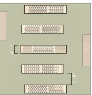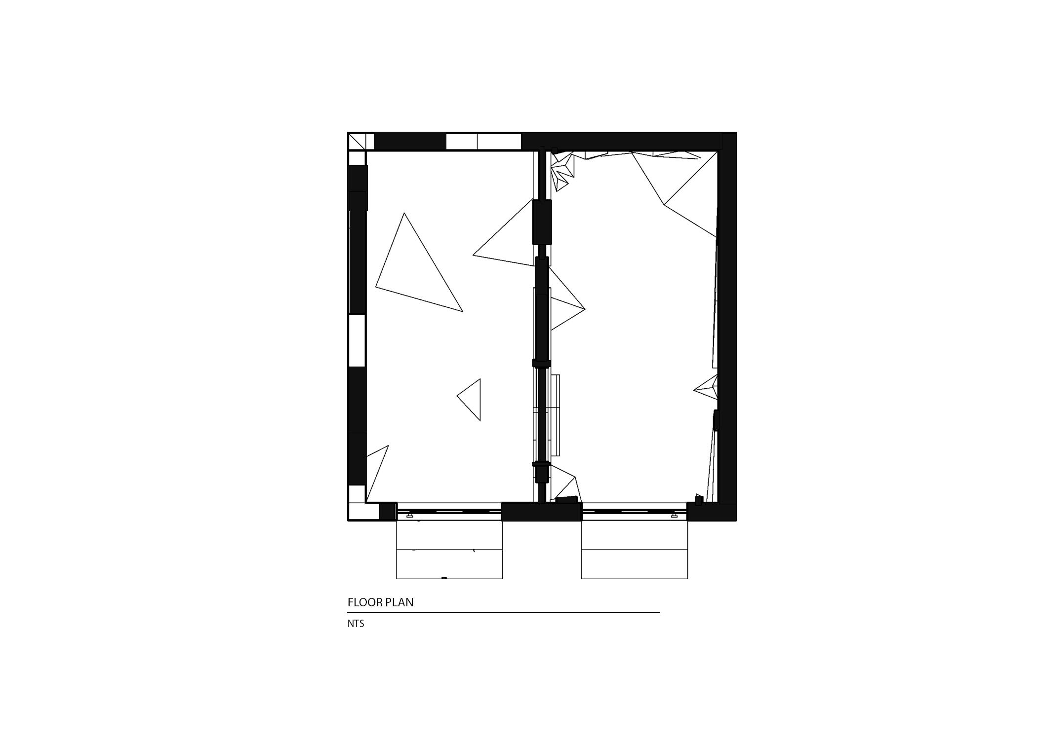 Using the five, 12 by 12 boxes, a separation of work and living space were created. The exhibit faces the street for easier access to guests, while the bedroom in the back proviedes isolation. A large kitchen was important for dietary needs and entertaining.