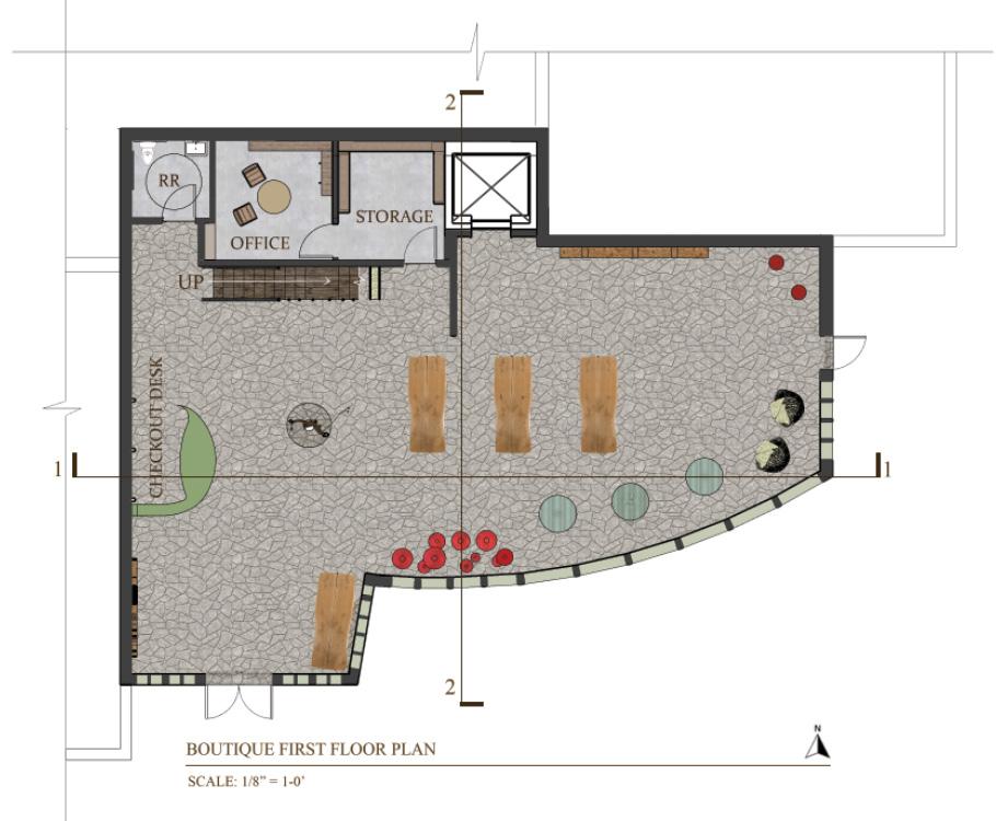 Given a floor plan, we were to design a boutique around products that promote sustainable living while also creating a brand identity. It included a mezzanine that uses 1/3 of the square footage.