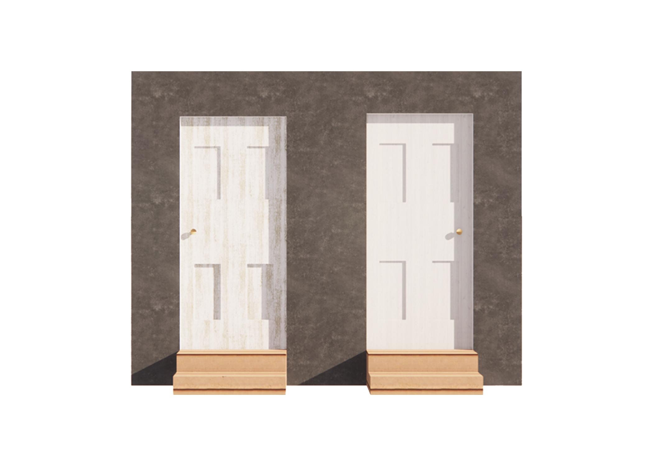Where we end up in life and how we get there is due to the choices and decisions we make on a whim or choosing what may be expected of that per son. This showcase represents simple as which door to go through, gives you a different experience or outcome. An installation in a museum or exhibit.