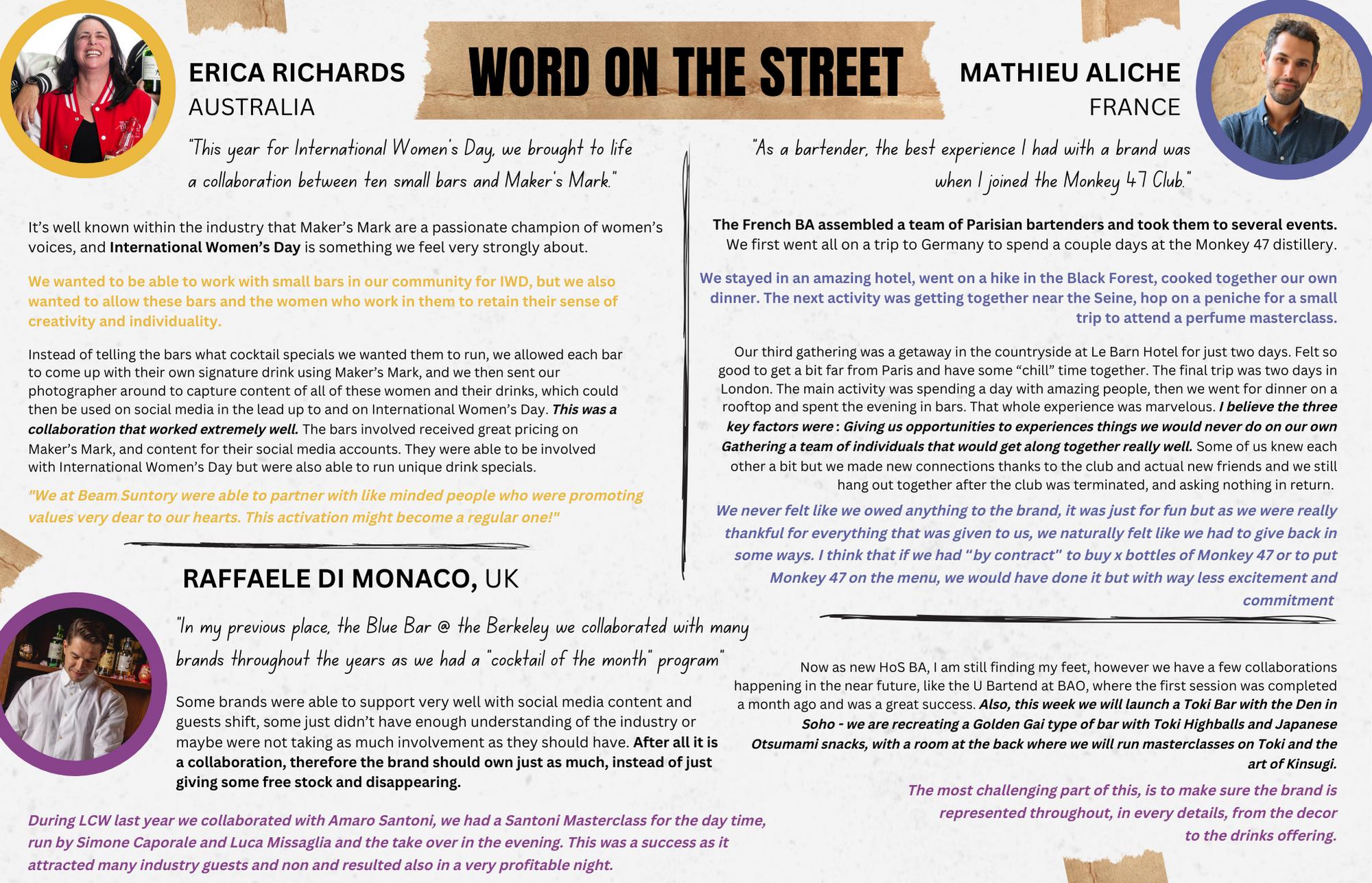 JOE: Bartending collaborations were more of a short-term decision, influenced by the creation of a new menu or a cocktail competition. As consultants, we are more concerned about the longevity of the partnership and how we can both benefit each other. We are mindful that we can’t work with everyone and competitive brands may be a conflict of interest.