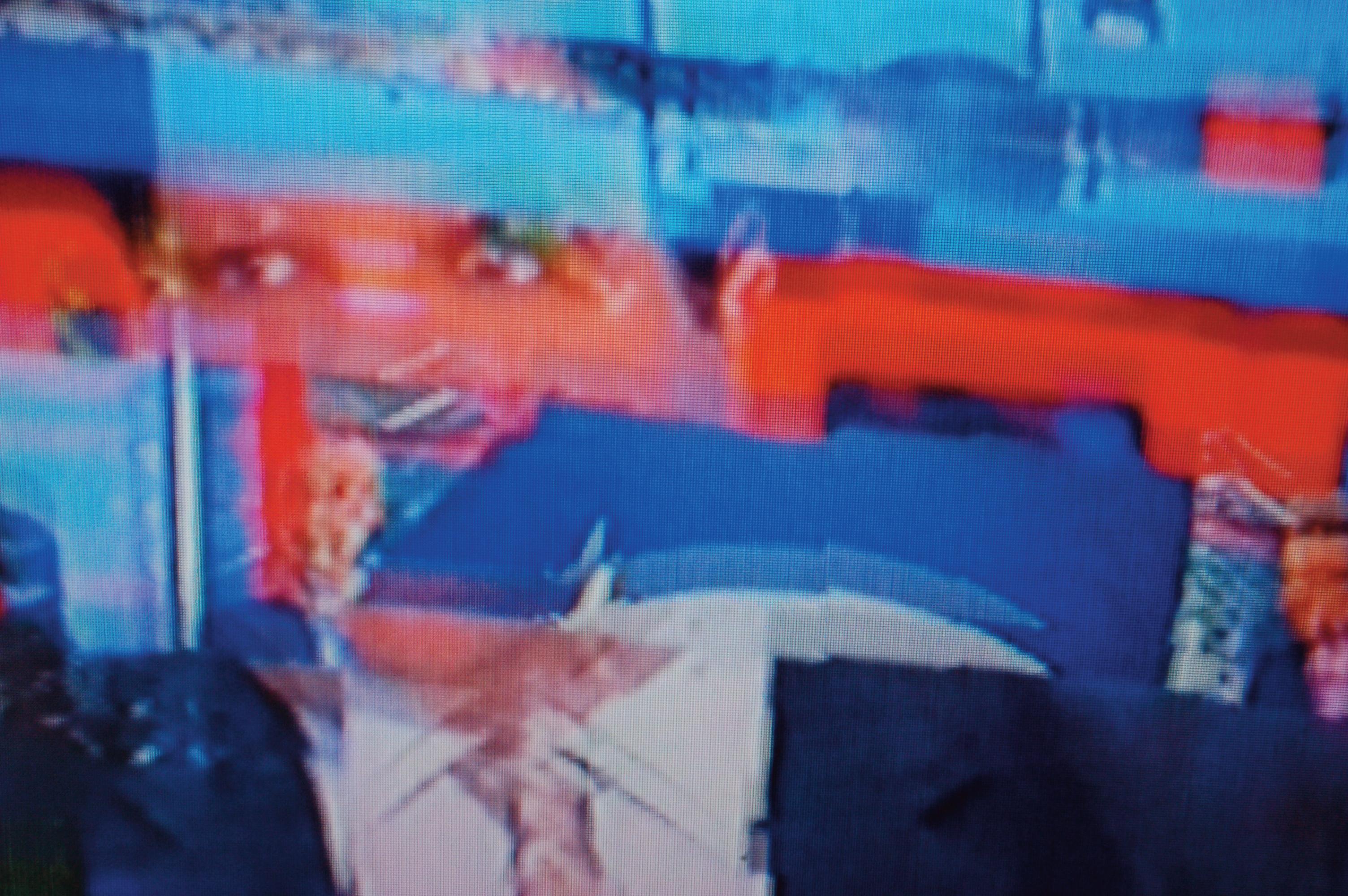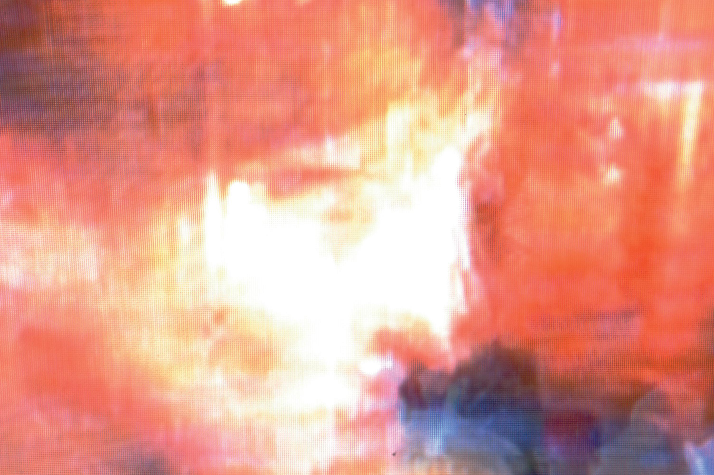 Le texte se veut rond. L’image est composée de petits carrés. Procédé d’ opposition de l’eau et du pixel. Il s ’agit de vous expliquer la formation d’instants magiques, où d’une combinaison improblable surgit une information: capture d’une mauvaise transmission satellite , créant ainsi des ruptures séquentielles de l’émission télévisuelle , photographiée à une heure tardive d’insomnie , bougés de 3 secondes et expositions sautées volontaires.