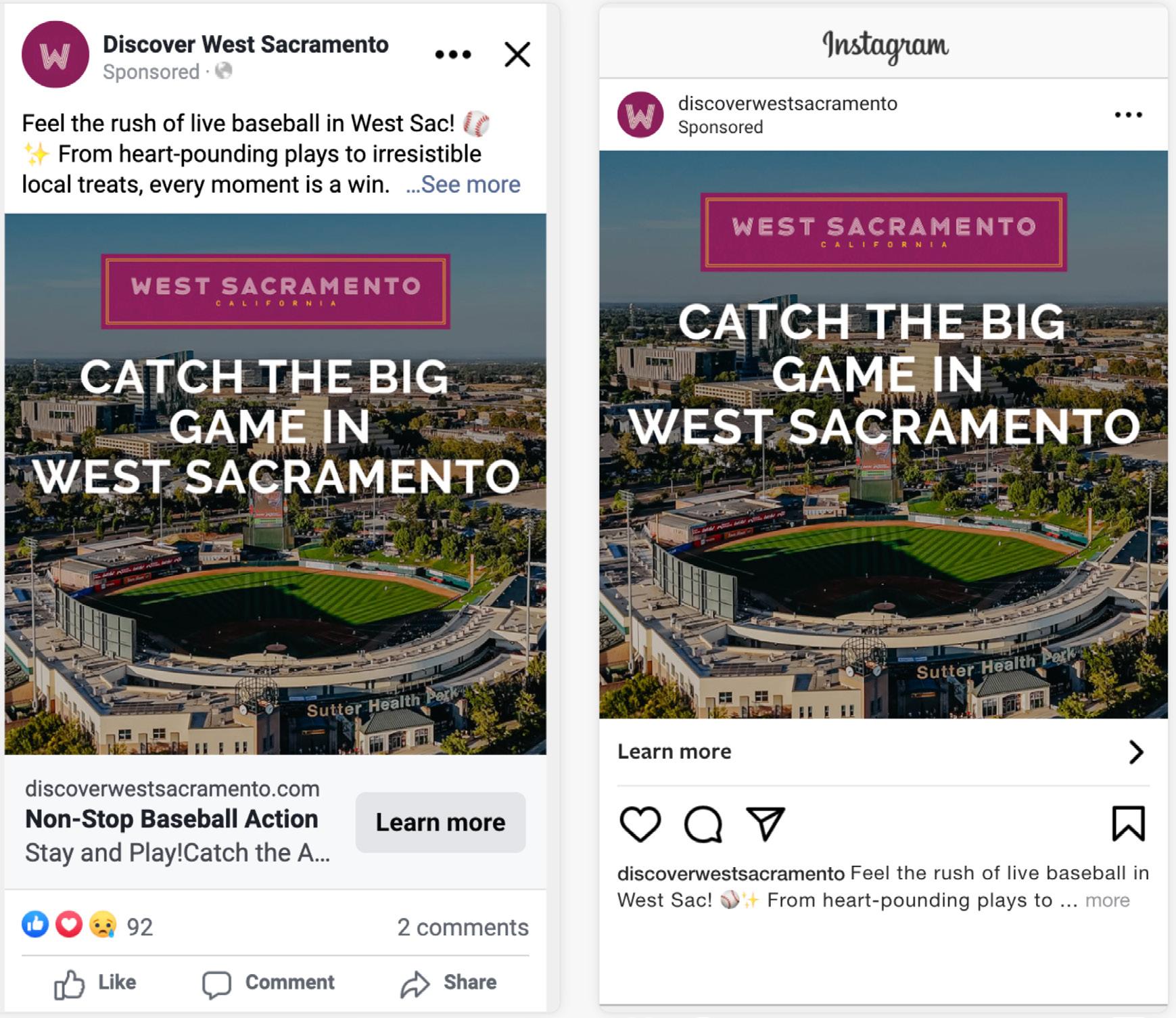 The campaign focused on top-of-funnel awareness, targeting audiences who were largely unfamiliar with the city’s offerings. By positioning West Sacramento as a convenient destination complete with dining, attractions, and hotels, the campaign aimed to build recognition and inspire future visitation among baseball fans and beyond.