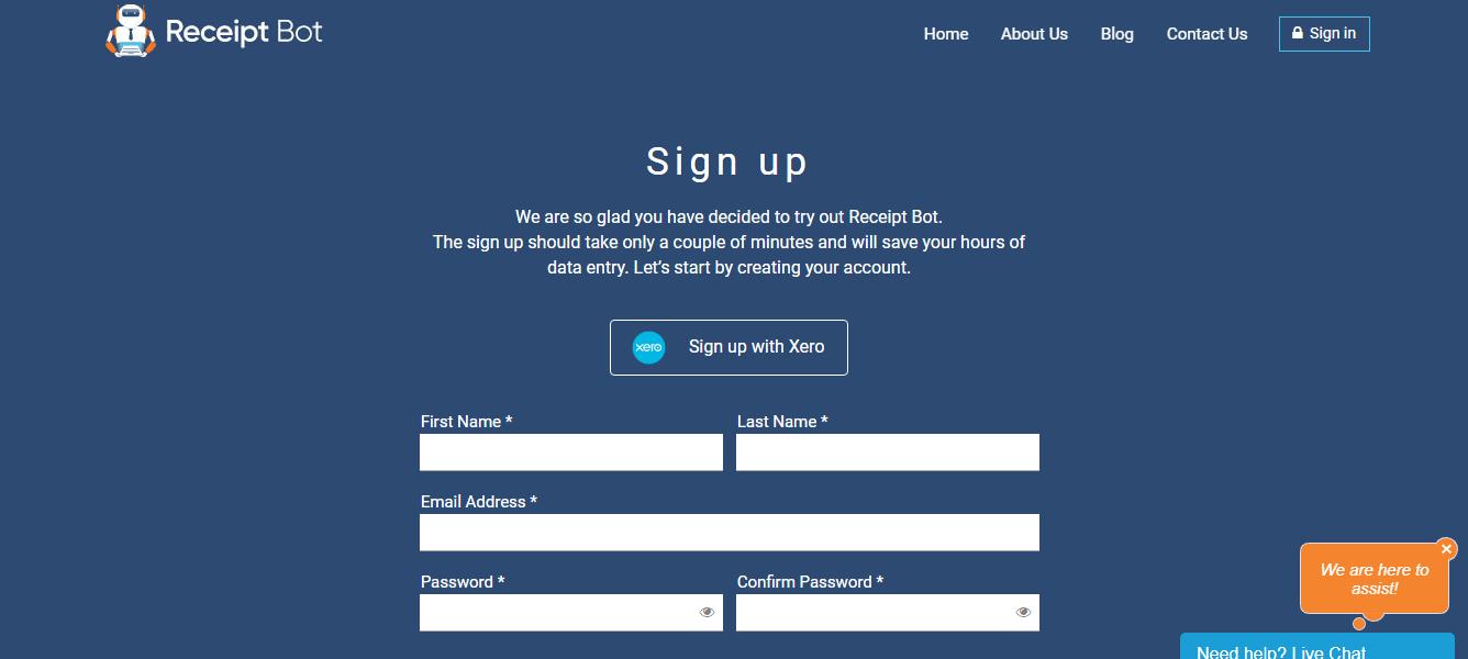 Step 2: To begin your free trial, you need to sign up first. Fill in your personal details such as Name and Email, and choose a strong password for secure login. Simply click on the "Sign Up" button to proceed. Alternatively, you can also sign up via Xero.
