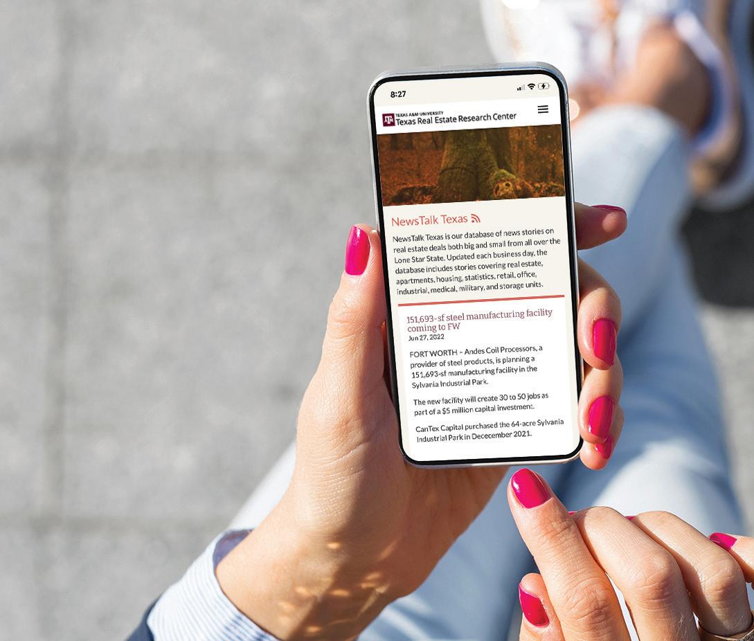 VIEWS EXPRESSED are those of the authors and do not imply endorsement by the Texas Real Estate Research Center, Division of Academic and Strategic Collaborations, or Texas A&M University. The Texas A&M University System serves people of all ages, regardless of socioeconomic level, race, color, sex, religion, disability, or national origin. Nothing in this publication should be construed as legal or tax advice. For speci c advice, consult an attorney and/or a tax professional.