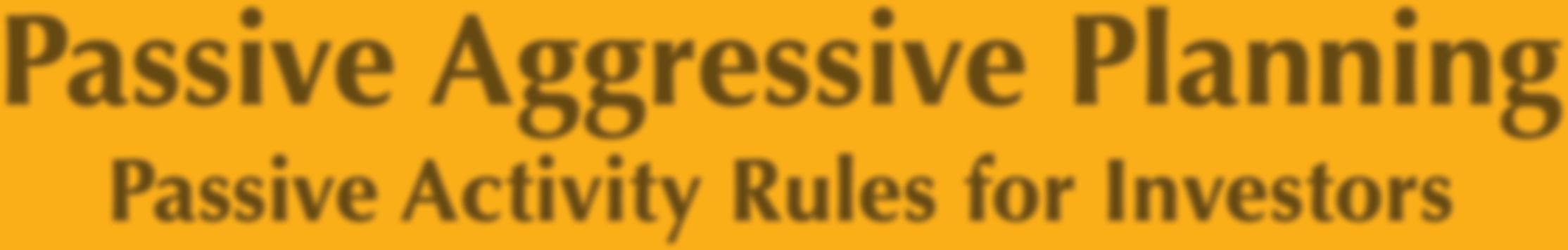 Passive Aggressive Planning Passive Activity Rules for Investors