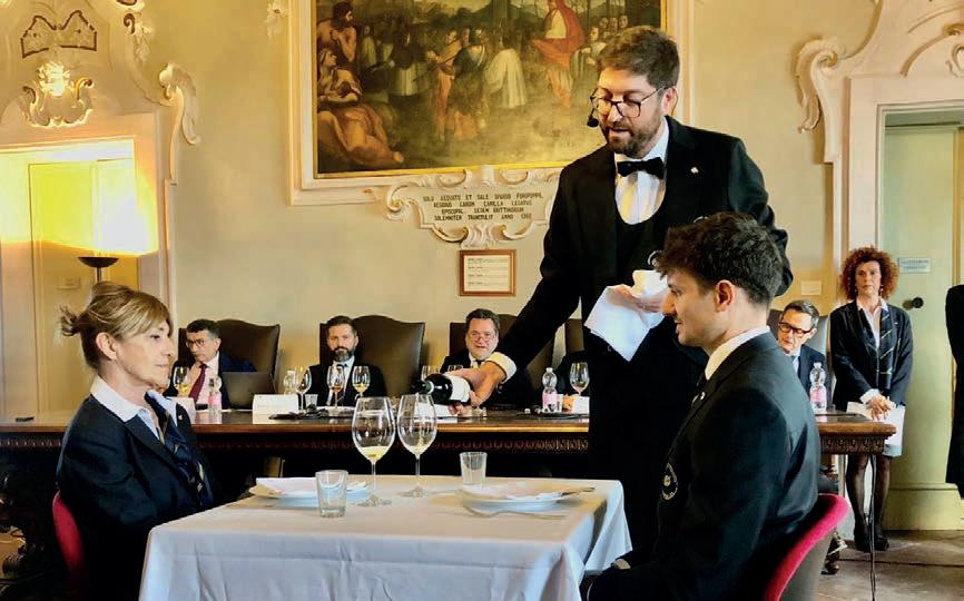 Marco Saiani impegnato nel servizio, una delle prove che vengono valutate dall’Ais per stabilire l’ambasciatore dell’Albana Docg