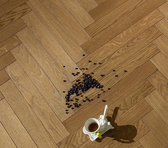 I pavimenti a spina in realtà sono un “classico” del setto re e sono sempre stati nel catalogo di Original Parquet, ma fino a qualche anno fa la domanda era secondaria, e quindi l’azienda si riforniva di questo genere di listelli grezzi di formato standard da fornitori esterni di fiducia, limitandosi alle opere di rifinitura, dagli effetti superficie alla verniciatura, in funzione di parametri di ottima quali tà del prodotto.