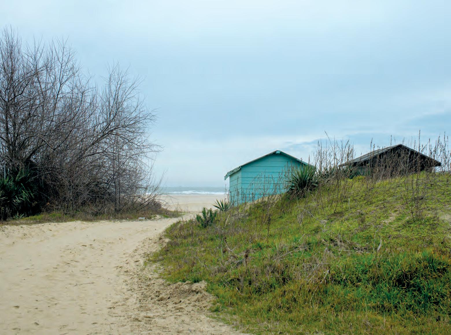 Il legno è già in alcune parti usurato dagli anni (in realtà neanche uno), la terra battuta varia da zona a zona, passando repentinamente dal classico grigio topo al giallo-ocra, senza disdegnare tratti di un orgoglioso color merda. I tronchi che servono per separare i percorsi sembrano restare in piedi solo perché legati tra loro con una bandella bianco-rossa stile Fbi, che evidentemente delimita una scena del crimine, probabilmente l’ennesimo fratino che non ce l’ha fatta, divorato magari da un pitbull di passaggio. Fanno tenerezza le piantine di pochi centimetri che qualcuno ha azzardato a definire “alberi”, un po’ come le dade dell’asilo che si ostinano a chiamare “ometto” vostro figlio di 2 anni. Nuove, delicate, piantumazioni sulle dune, con desolanti cartelli già abbattuti o piegati dal vento con la scritta che sembra davvero voler essere una supplica: «Vietato calpestare, zona piantumata di recente», o qualcosa del genere (non si vede bene). A tratti si alternano montagnole di ghiaia che vogliono scherzosamente farci credere che ci sia un cantiere in corso che renderà il tutto tipo il lungomare di Rimini ma che no, invece, verranno solamente stese nei dintor ni, per tappare qualche buco. In lontananza, la mitica ghiaia rinverdita - come ho letto da qualche parte - ci fa l’occhiolino, sussurrandoci che potrebbe donare quel tocco di verde che manca, quando non ci saranno le macchine parcheggiate sopra. Il progetto di riqualificazione avanza prendendo probabilmente come modello la Baghdad post bombardamenti, con l’obiettivo ambizioso di cambiare per sempre il nostro litorale, di produrre una nuova cartolina turistica, ci dicevano. Giusto il tempo di finire di abbattere un’altra decina di pini secolari a Lido di Dante, che pare si costruisca così un “Parco Marittimo”, facendo entrare aria, togliendo alberi da posizioni scomode, per poi ripiantarne altrove, o al massimo annaf fiare dei semi.