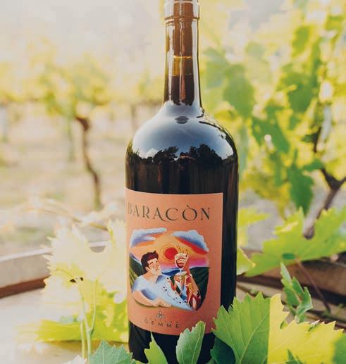 modo per avere prodotti diversi. Dunque il 10 settembre abbiam fatto la seconda vendemmia, da cui è uscito il Baracòn, dedicato a mio nonno, un Romagna Sangiovese Doc, con l’idea di fare una vinicazione come l’avrebbe fatta mio nonno trent’anni fa, ma con qualche accortezza attuale. Quindi una vini cazione molto naturale, che non fa ltrazioni nè chiari che e viene imbottigliato per scelta solo in bottiglie magnum da un litro e mezzo, perché il soprannome di mio nonno, Baracòn appunto, è quello di “uno da baracca”, quindi una magnum un po’ in controtendenza, perché non è un vinone costoso e importante ma perché deve essere sulla tavola di una cena conviviale. La terza vendemmia, in ne, è stata fatta il 14 settembre solo nella vigna piccola, che sorge a qualche metro da un piccolo laghetto, al cui centro emerge una roccia di spungone, tipica di questo territorio, che aiuta tanto a smorzare l’argilla. L’acqua mi ha riportato al mare, a cui sono molto legato. Questo vino è un Romagna Sangiovese Doc Mga Bertinoro, ma per ora non posso dir nulla sul nome».