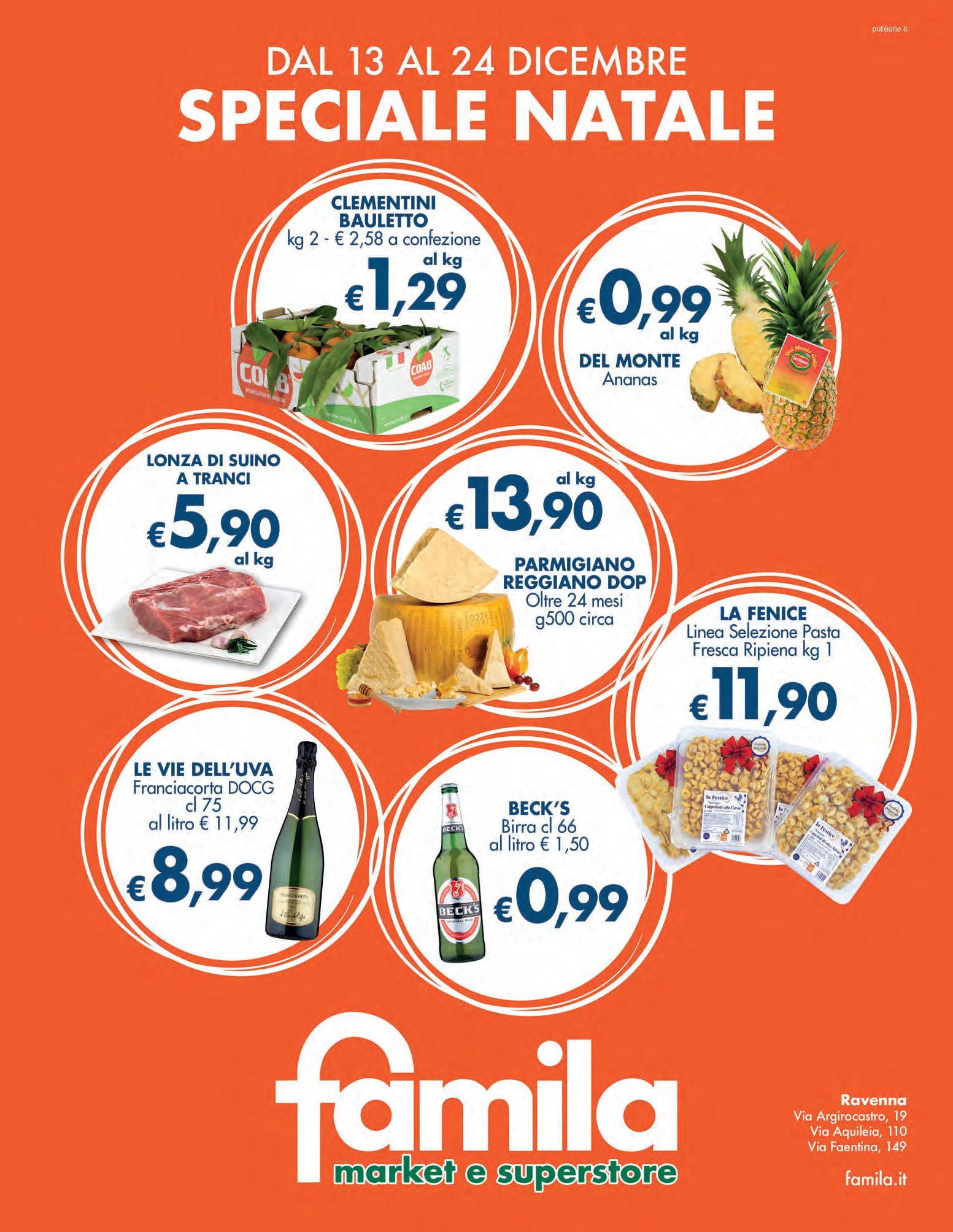 SEGUICI SU CAVOLO VERZA O CAPPUCCIO BIANCO 1,15 al kg € FORMAGGIO ANGELICO DI MONTAGNA FRUTTI DI UN TERRITORIO stagionatura minima 60 giorni 11,50 al kg € 1,45 €/kg 5,80 € PECORINO TOSCANO DOP SAPORI&DINTORNI CONAD MORTADELLA CON PISTACCHI SAPORI & DINTORNI CONAD € € CLEMENTINE DI CALABRIA SAPORI&DINTORNI CONAD confezione 1 kg € PERE ABATE CONAD PERCORSO QUALITÀ 2,30 al kg € FUSI E ANCHE DI POLLO CONAD PERCORSO QUALITÀ 4,90 al kg € BRACIOLE DI COPPA DI SUINO CON OSSO CONAD PERCORSO QUALITÀ PETTO A FETTE SOTTILI CONAD PERCORSO QUALITÀ 10,90 al kg € SALSICCIA SOTTILE DI SUINO 6,90 al kg € STRACCIATELLA CONAD 9,90 al kg € LE BIRBE AMADORI sfiziosi bocconcini con filetti di pollo panati, 300 g 2,90 €/kg 9,67 € CODE DI MAZZANCOLLE TROPICALI DECONGELATE 12,90 al kg € CUORE DI MERLUZZO NORDICO 19,90 al kg € CAPPESANTE ATLANTICHE FRESCHE 1/2 GUSCIO 18,90 al kg € OFFERTE VALIDE DA GIOVEDì 8 A MERCOLEDì 14 DICEMBRE 2022 POMODORO COCKTAIL DATTERINO CONAD PERCORSO QUALITÀ 14,50 al kg 11,90 al kg GORGONZOLA GIM INVERNIZZI € PROSCIUTTO COTTO DI ALTA QUALITÀ CONAD € 19,90 al kg 5,80 al kg € 12,90 al kg 1,69