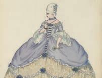 artistiche dell’autrice che unisce alla penna e acquerello alcune minuziose note manoscritte – come era sempre solita fare – per stoffe e ri niture. Si aggiunge un piccolo nucleo di disegni per costumi maschili e femminili settecenteschi che forse appartengono a una delle serie inedite che Calderini stava studiando. Grazie alla collezione Classense e ad alcuni prestiti dalla Bertarelli di Milano è possibile vedere anche altro materiale fra cui appunti a disegno, fotograe di scena, spezzoni di lmati da regie teatrali e televisive che ampliano le informazioni sul lavoro dell’autrice. Altre due sezioni raccolgono varie pubblicazioni sulla storia del costume attraverso i secoli e documenti sulla vita di Calderini, sui suoi rapporti con intellettuali e amici romagnoli –Zimelli, Spallicci, Balilla Pratella – che la sostengono negli anni anche a distanza.