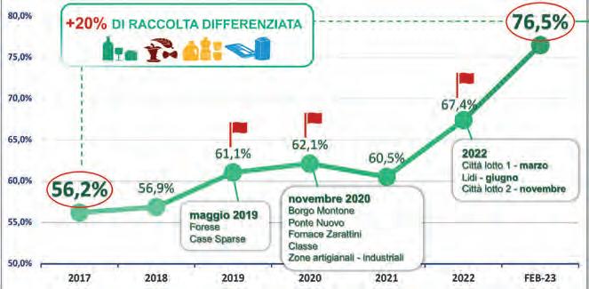 Nella z ona residenziale e a Marzeno oltre 15.300 utenze sono passate da raccolta stradale (con raccolta porta a porta a sacco della car ta in z ona residenziale) a porta a porta integrale. Nelle frazioni (Granarolo, Reda, Borgo Tuliero, Errano e Santa Lucia) circa 1.800