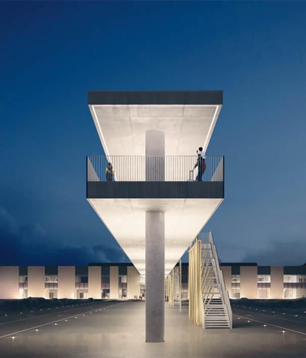 Se Minardi parte dai luoghi, dalla natura, dall’architettura senza architetti e, spesso, dall’anonima architettura industriale, ispirandosi a capannoni, tettoie, silos, cisterne, macchine portuali, gru ecc., anche de Chirico – oltre a templi a tholos, probabilmente ispirati agli affreschi pompeiani, alle torri, cilindriche e coniche, alle statue antiche e non, dipinte sempre di spalle, come nei quadri di Caspar David Friedrich – ha raf gurato, almeno una volta, nell’Enigma della partenza, datato dall’artista al 1914, una ciminiera rossa, ricordo delle periferie industriali italiane e parigine. Meta sica dipinta, quella di de Chirico; metasica concreta, quella di Minardi. Alberto Giorgio Cassani