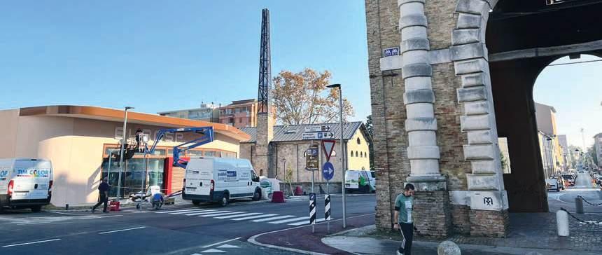 ne è in fase di riquali cazione per mano di Sgs Holding e nei mesi scorsi è stata demolita in quanto pericolante la parte alta della ciminiera, sostituita con una struttura di metallo che ricalca il pro lo originale. All’ombra della ciminiera, proseguendo per via Venezia, è in corso la realizzazione di un altro edi cio: una costruzione residenziale composta da nove unità abitative e in mano all’agenzia ravennate Rare.