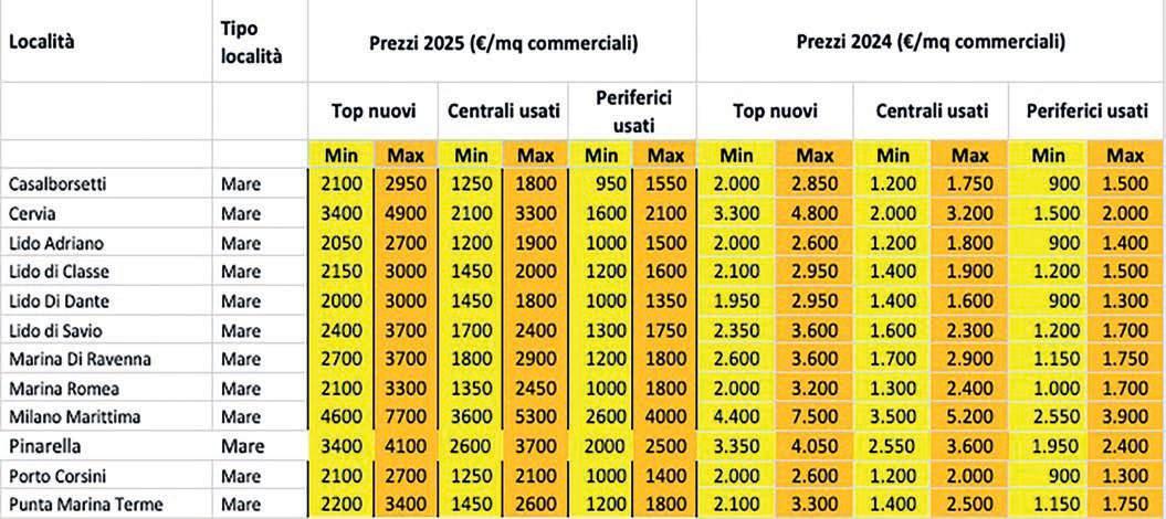 (1,9% nel complesso delle località di mare monitorate della provincia di Ravenna) i preconsuntivi 2025 delineano un prezzo medio per le località del comune di Ravenna che sfonda soglia 2.320 euro al metro quadro (+2,5 percento) e che arriva a s orare i 3.000 per le località del cervese (+2,8 percento).