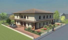 Villette ad angolo con ottime finiture da realizzarsi in splendida zona residenziale ed inserite in un complesso di sole quattro unità abitative ad elevato risparmio energetico, cosi composte: P.T. Ingresso su loggia, soggiorno con angolo cottura, bagno, disimpegno e garage con accesso diretto alla casa; P.1. Camera da letto matrimoniale, camera doppia, camera singola, disimpegno e bagno;