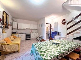 In posizione strategica e vicina al plesso scolastico, villetta in complesso di recente costruzione. Si accede all’immobile da un ampio parcheggio che conduce al piano interrato, con cantine, garage e posti auto per i condomini. Un curatissimo vialetto conduce alle abitazioni. Al P.T. ingr. su ampio soggiorno con accesso a grazioso giardino privato sul retro, bellissimo angolo cottura finemente arredato, bagno di servizio; da scala in arredo si accede sia al garage nel piano sotterrano sia al piano primo con la zona notte: una bellissima camera matrimoniale con balconcino loggiato, una camera singola e un ampio bagno con secondo balconcino. la villetta è dotata di cappotto, videocitofono, risc.aut., 3 split inverter con aria condizionata e pompa di calore, portoncino blindato e infissi in legno con vetrocamere. Si cede anche parzialmente arredata ed è già presente anche la relazione tecnica di conformità urbanistica