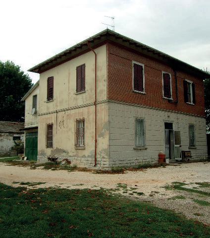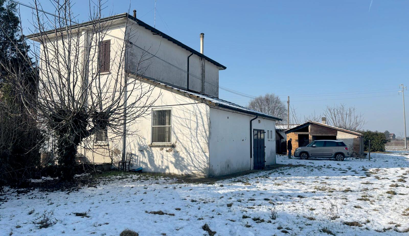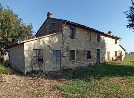 Vicino Ravenna, circondata da campagna, casa indipendente con servizi staccati su lotto di oltre 2000 mq. P. T. soggiorno/sala da pranzo, cucina abit., camera da letto, ripostiglio/centrale termica, bagno. 1° P. 2 camere da letto, disimpegno, bagno. In corpo staccato tavernetta, cantina, ripostigli vari oltre, garage. Impianti e finiture dell’epoca.
