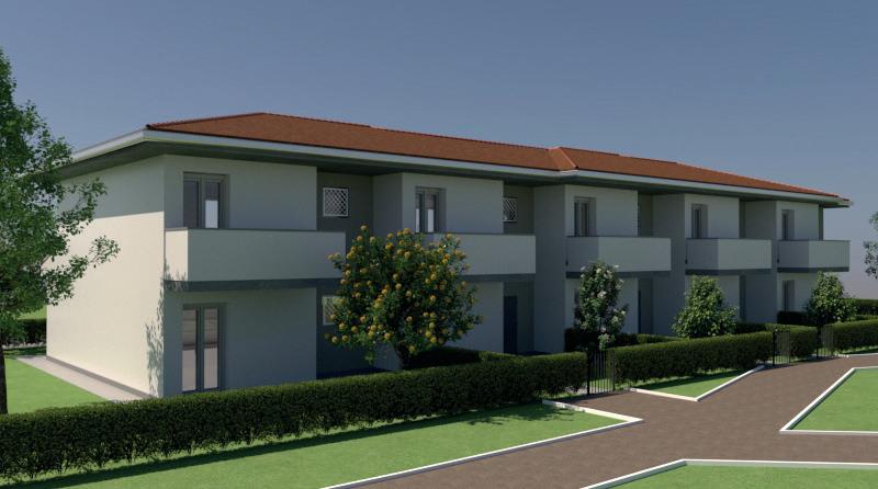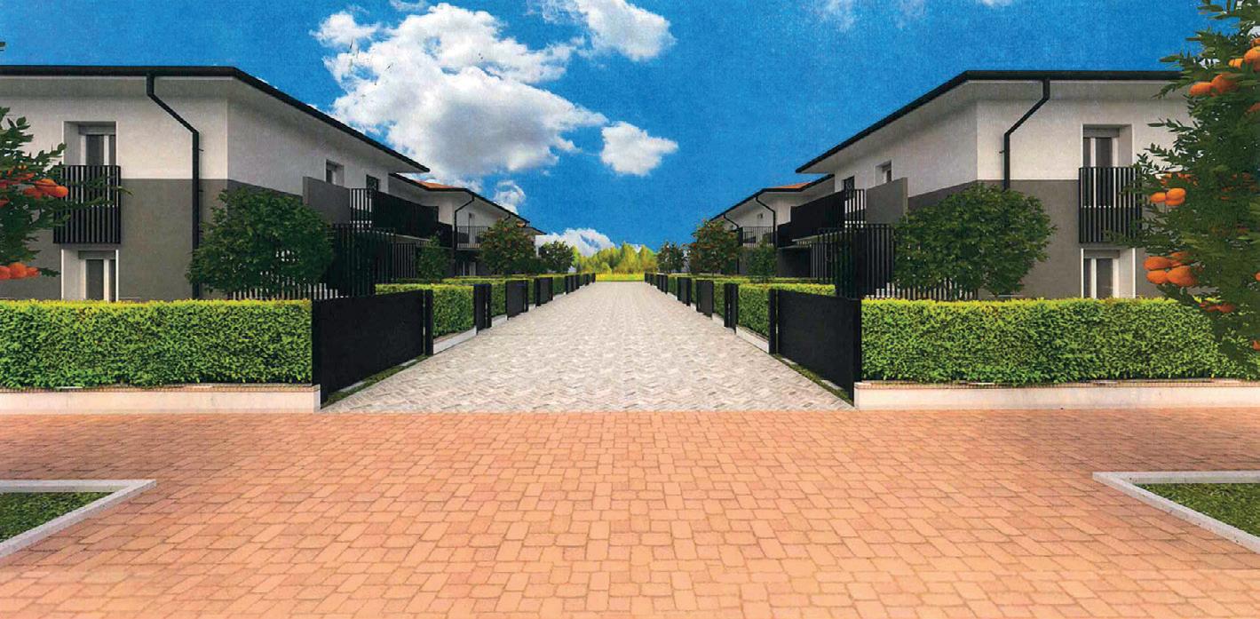 Prossima costruzione di villette in schiera di 6 unità. Pt = cortile con posto auto. Soggiorno con angolo cottura, bagno, vano tecnico. 1p = 3 camere letto, bagno, balcone INFO IN UFFICIO