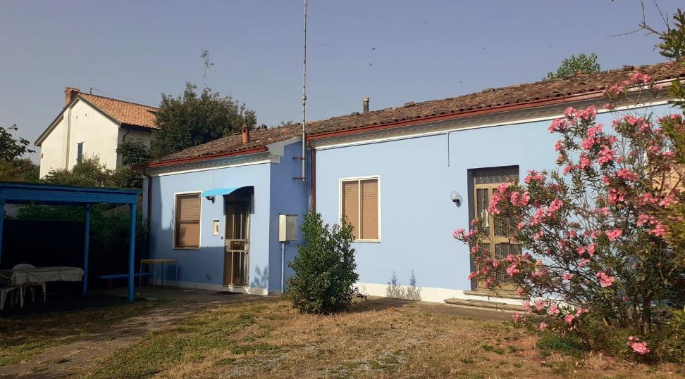 Casa singola tutta al piano terra, giardino completamente recintato su 4 lati di 200 mq. Ingresso, cucina, soggiorno, 2 camere letto, bagno. Garage e 3 ripostigli. Tetto rifatto nel 2024, infissi e zanzariere nuove. Immobile abitato con consegna da concordare con il venditore. C.Energ in corso.