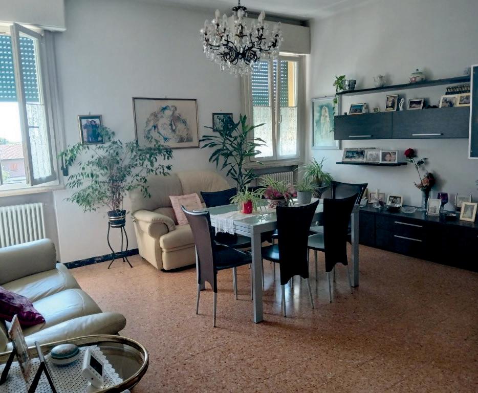 Quartiere Nullo Baldini Appartamento grande (130 mq) in zona residenziale con servizi, in palazzina ben tenuta degli anni 70. 1° P. con ascensore: ingresso, cucina, sala, balcone, 2 matrimoniali, 2 doppie, bagno, wc/ lavanderia con balcone. Al P. T. comodo garage e giardino comune. Riscald. centralizzato con conta calorie. C.Eneg in corso.
