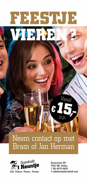 eten we trouwens wel warm, dus dat moet ook klaargemaakt worden. En thuis houd ik de agenda bij. Me druk maken? Nee hoor. Dat heeft geen zin. Een dagindeling kan zo maar veranderen. Dat heb je met de handel. Die wisselt nog wel eens.’’ Tijd voor een feestje is er altijd. Maar voorop lopen met de polonaise tijdens de carnaval? Dat zie je Jolanda niet zo snel doen. ,,Vroeger gingen we nog wel eens verkleed naar boer Biet. Tegenwoordig kijken we alleen nog de optocht, omdat Jan één van de wagenbouwers is. Wel vind ik de sleuteloverdracht die hier altijd in deze zaal plaatsvindt een hoogtepuntje. Koffie schenken?’’ Jolanda schiet in de lach. ,,Zeg maar bier haha. Dat nemen ze gelukkig zelf mee. Verder hoop ik dat ik dit soort dingen in de Oudheidkamer nog lang mag meemaken.’’