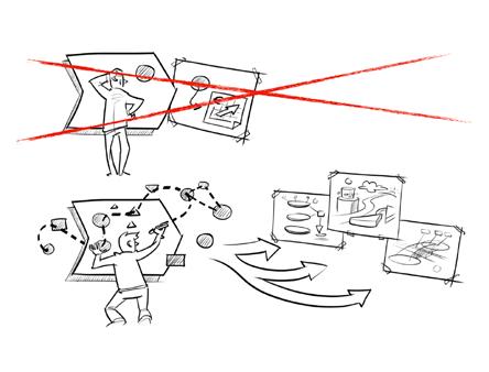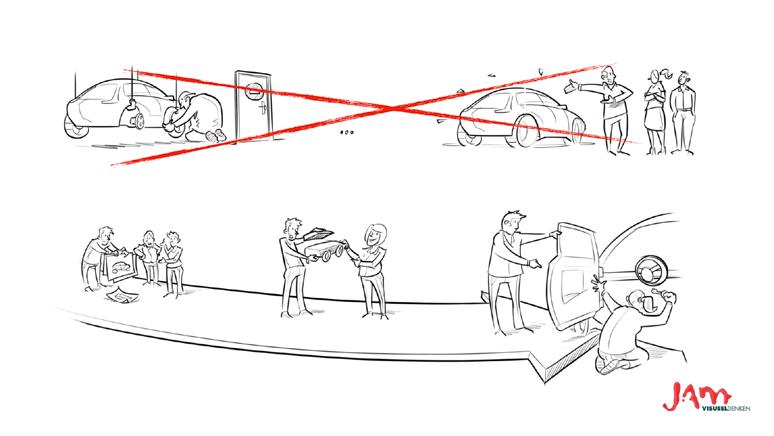 Een voorbeeld is het ontwikkelen van een nieuwe manier van bestellingen uitleveren in een fastfoodrestaurant. ‘Bouw eerst de balie, de uitgifteloketten et cetera van karton. En ervaar of het werkt en wat gasten ervan vinden. Overigens’, waarschuwt de futurist met een knipoog, ‘wil je zo werken, dan moet je wel accepteren dat je continu aan het vernieuwen bent.’ \