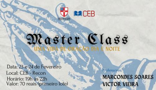 Nodia07/02teremoso Cursode Librasenosdias23e24/02o Master Classcomotema"Uma Vida de Oração Dia e Noite" com os Professores Pr. Marcondes Soares e Pr. Victor Vieira, fundador da Igreja Base em Vitória do Espírito Santo e atualmente é missionário na casa de oraçãoIHOPdoKansas.Alémdessesnovoscursos,aindatemosvagasparaa Escola Carisma eparaoCursoCapitaldoReino InformaçõeseinscriçõesnoInstagram@cebrecon