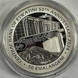 The Central Bank of Eswatini issued a E50 silver coin to mark the Bank’s Golden Jubilee anniversary. A Commemorative Coin Technical Committee was formed and conceptualised the theme for the commemorative coin – ‘Telling Eswatini’s History Using Currency’.