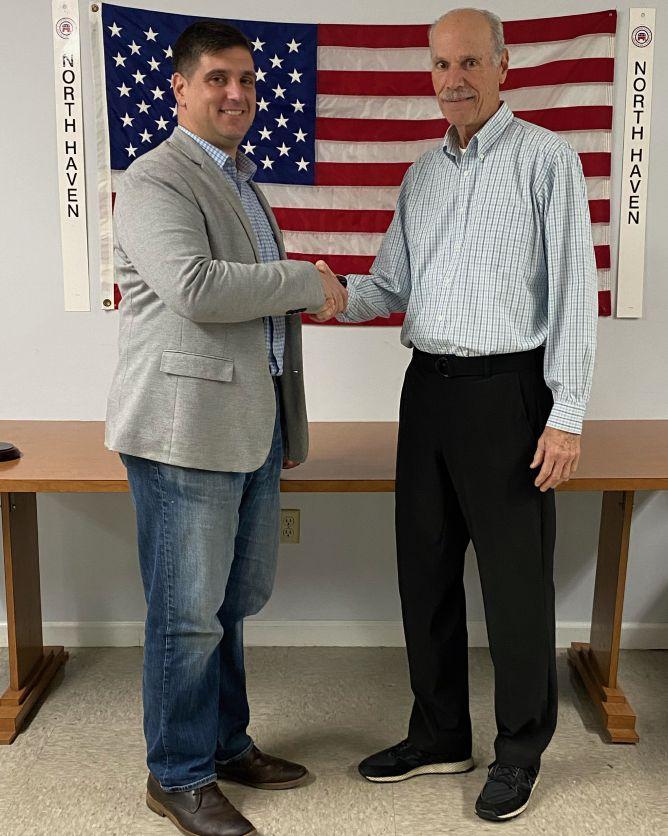 From left: The North Haven Republican Town Committee’s new chairman Vincenzo Gallo and outgoing chair Jim DiCarlo. Contributed