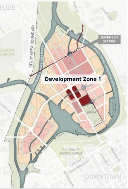 • Infrastructure Funding Strategy – Based on more detailed planning and costing, prepare a detailed funding strategy for Panther Island infrastructure that considers public sector contributions, feasibility of developer contributions and participation, and the establishment of fee methodologies and projections, where appropriate for infrastructure repayment from future private development. For example, it is anticipated that fees from future development will be expected for canal access, thoroughfare construction, and wastewater system impacts. Beginning to estimate the fees required and methodologies for calculating and applying them will be important for assessing development costs and feasibility over time. Engage with North Central Texas Council of Governments regarding transportation project funding for Panther Island.