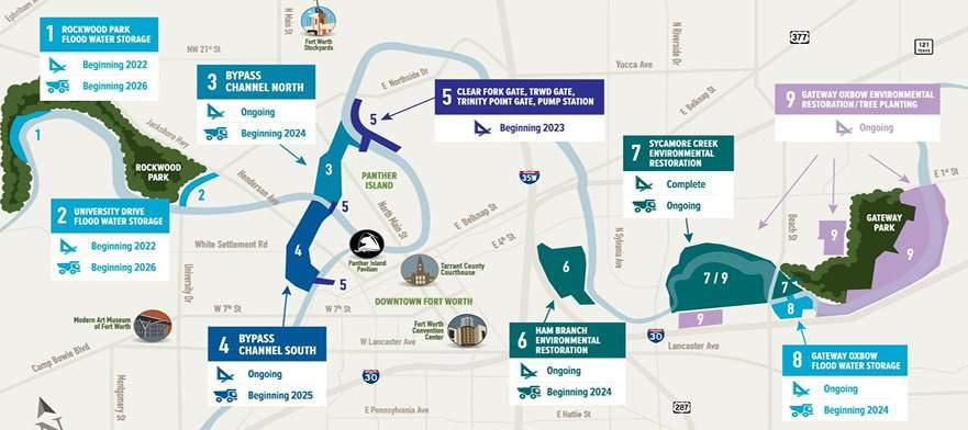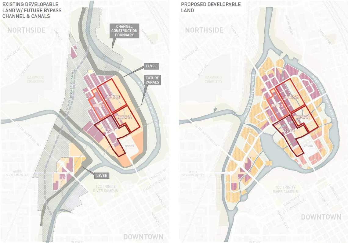 Located immediately north of Downtown Fort Worth, Panther Island district of approximately 335 acres, which consists of approximately 146 acres that are considered developable today and an additional 193 acres that will become developable once the Central City Flood Control project is completed and the existing levees are removed. In addition to Downtown, Panther Island is surrounded by several of Fort Worth’s most celebrated neighborhoods and districts, including the Stockyards, the Northside, and the Cultural District. Panther Island has a concentration of existing businesses that have been located there for decades. Over the last 15 years, TRWD has acquired land in preparation for the flood control implementation that is now being funded by the United States Army Corps of Engineers.