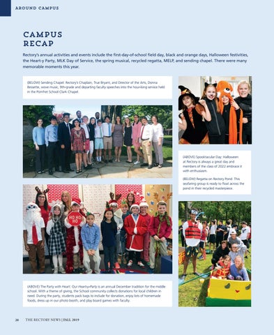 campus recap Rectory’s annual activities and events include the first-day-of-school field day, black and orange days, Halloween festivities, the Heart-y Party, MLK Day of Service, the spring musical, recycled regatta, MELP, and sending chapel. There were many memorable moments this year.