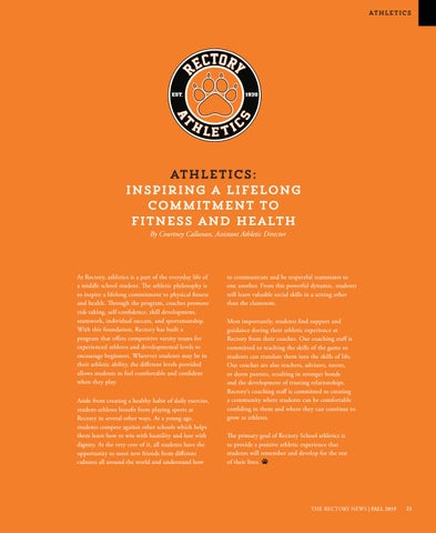 athletics: inspiring a lifelong commitment to fitness and health By Courtney Callanan, Assistant Athletic Director