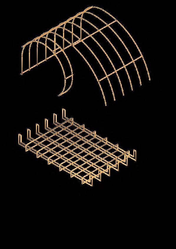 pemasangan batang pipa besi bending sebagai elemen pengaku struktur utama shelter yang dilapisi
