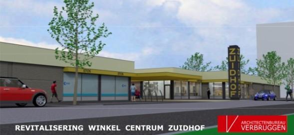Het is alweer 5 jaar geleden dat er een schetsontwerp werd gemaakt voor het opwaarderen van winkelcentrum Zuidhof. De opdracht hiertoe werd gegeven door wethouder Pieter Meekels (economische zaken). Uiteindelijk is pas begin 2014 nadat alle betrokkenen overeenstemming hadden bereikt groen licht gegeven voor de definitieve uitvoering.