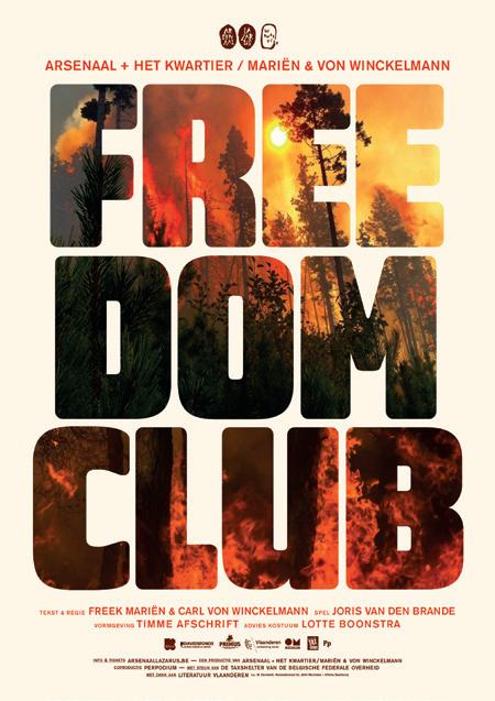 Op dit moment loopt bij Arsenaal/Lazarus het theaterstuk Freedom Club (zie affiche blz 28). Het gaat over een man op zoek naar impact op een desastreuze klimaatverandering. Terwijl hij de wereld probeert te redden, speelt hij echter zijn gezin kwijt. Een stuk over engagement en woede. Regisseurs-auteurs Freek Mariën (winnaar Taalunie Toneelschrijfprijs 2015) en Carl von Winckelmann van Het Kwartier zetten hiermee hun succesvolle samenwerking verder. Samen met acteur Joris Van den Brande maakten ze een voorstelling voor een publiek vanaf 14 jaar.