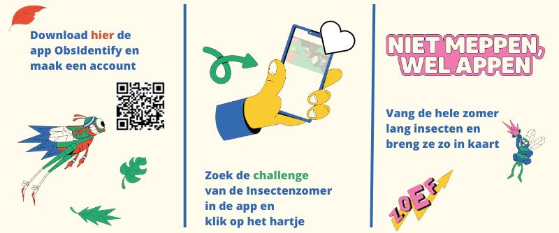 Vang deze zomer insecten met je smartphone. Zo doe je mee aan de Insectenzomer van Natuurpunt. V.U.: Natuurpunt vzw, Walter Rycquart, Coxiestraat 11, 2800 Mechelen, ON 0434.364.713, RPR Ondernemingsrechtbank Antwerpen, afdeling Mechelen, info@natuurpunt.be, www.natuurpunt.be © Xerxes Heirman