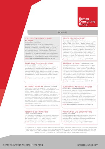 ACTUARIAL MANAGER, Hampshire, £50k-£70k A diverse and interesting management role has become available with one of the UK's top insurers based in the South West of England. This role will be a mixed pricing and reserving role focusing on commercial lines of business and will involve line managing at least one more junior analyst. The role will be highly autonomous and offer the opportunity to innovate, drive positive change and implement new solutions. The successful candidate will have strong analytic capability and experience within either GI pricing, reserving or both. Applications are encouraged from non-actuaries, part qualified individuals and actuaries alike. Contact: antony.sanderson@eamesconsulting.com | 0207 092 3230
