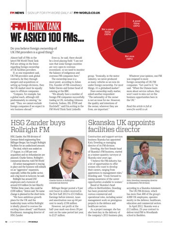Do you believe foreign ownership of UK FM providers is a good thing? Almost half of FMs in the latest FM World Think Tank Poll are sitting on the fence regarding foreign ownership of UK facilities providers. If, as one respondent said, UK FM providers seek global contracts, be they through mergers and acquisitions or setting up foreign divisions, then the UK market must be equally open to offshore companies. “Compass, for example, has a global reach, although still predominately in catering,” he said. “Thus, we cannot exclude foreign companies if we expect to win business abroad.”