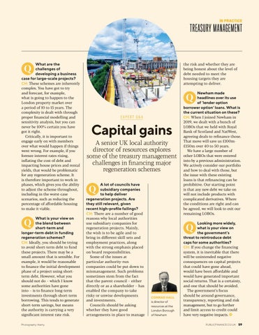 CH: If you change the financing system, it is inevitable that there will be unintended negative consequences on capital projects that could have gone ahead, would have been affordable and would have generated important social returns. That is a certainty, and one that should be avoided. The government’s focus should be around governance, transparency, reporting and risk management, but to go further and limit access to credit could have very negative impacts. PUBLICFINANCE.CO.UK 59