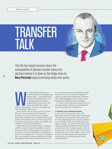 TRANSFER TALK The FCA has raised concerns about the sustainability of pension transfer advice but advisers believe it is down to the dodgy minority. Rory Percival urges prioritising needs over wants