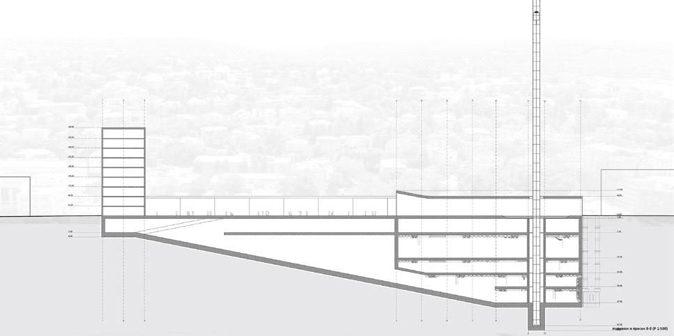The site in is located on the border zone of different cultural and spatial patterns: modern against traditional, residential against commercial, plain against raised terrain, massive forms against fragmented objects... The introduction of the lamella and its strong rise along Vojvodа Mišić Boulevard creates a “dam” that protects the specific hinterland from the highway and its future development. It houses shops (oriented towards the boulevard and the central area of the city block), apartments and business. By digging into the naturally raised terrain, a gallery is formed with a public space above it and additional catering and cultural contents. The complex program of the building acquires a hybrid character by connecting different uses, creating shared activities. In addition to public spaces, semipublic spaces intended for tenants and employees are being created.