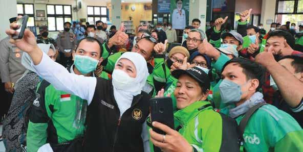 GUBERNUR Khofifah Indar Parawansa bersama para ojek online saat menyalurkan program perlindungan sosial dampak inflasi dan kenaikan harga BBM di Kantor Bersama Samsat Kabupaten Sidoarjo, Rabu (21/9/2022). Gn/erFanDI PuTra PenamPIlan lalare orkestra memukau jamaah Tablig akbar Peringatan HuT ke- 7 masjid Haji muhammad cheng Hoo Banyuwangi. Peringatan Hari Ulang Tahun (HUT) ke- 7 Masjid Haji Muhammad Cheng Hoo Banyuwangi digelar meriah Sabtu (17/9/2022) malam. Selain dihadiri sejumlah ulama, tokoh masyarakat, dan pejabat, sekitar 10.000 jamaah hadir di acara Tablig Akbar dengan tema “Merawat Keberagaman Mengukuhkan Islam Rahmatan Lil-Alamin” itu. rusIa emoH kaLaH, kuasaI 4 WILayaH