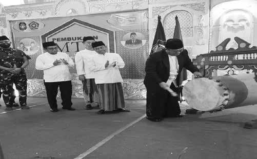 Walikota Blitar Drs H Santoso MPd memukul bedug tanda dibukanya MTQ 2022 Kota Blitar.