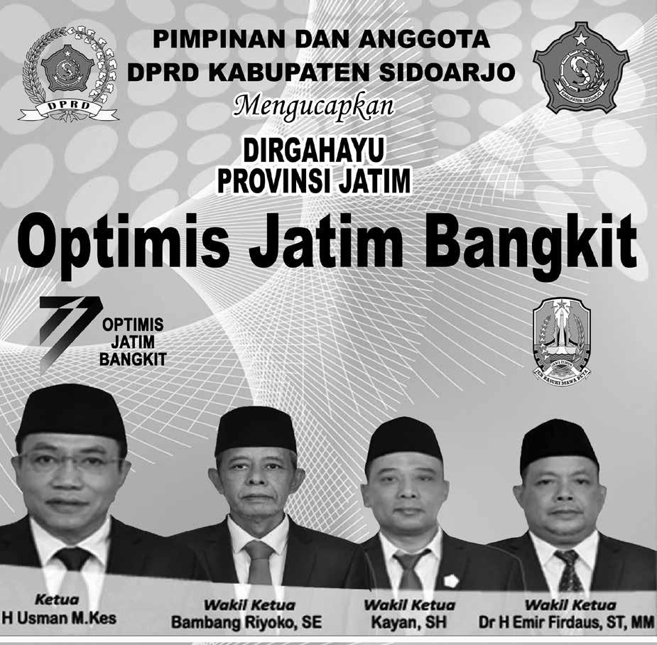RESESI DUNIA, GUBERNUR KHOFIFAH TERAPKAN ‘IKI’ HUT PEMPROV JATIM KE-77: Upacara Peringatan HUT Jatim Ke-77 di Gedung Negara Grahadi, Rabu (12/10/2022), dihadiri pejabat Pemprov Jatim, TNI, POLRI hingga mantan Gubernur Jatim. Tampak Gubernur Jatim Khofifah Indar Parawansa (lima dari kanan) diapit mantar Gubernur Soekarwo (sebelah kiri Khofifah) dan mantan Gubernur Imam Utomo (sebelah kanan Khofifah). ‘Diselamatkan’ Tahun Politik Chatib Basri l l BACA: Hadapi . di Hal 11 GN/Istimewa Suasana salah satu lokasi di jatuhnya rudal Rusia. GN/GATOT SUSANTO SUASANA asri Griya Batik Olive di Kota Batu. Inzet: Nurul Siti Fadillah (kanan), Yayuk Murniawati (kiri)