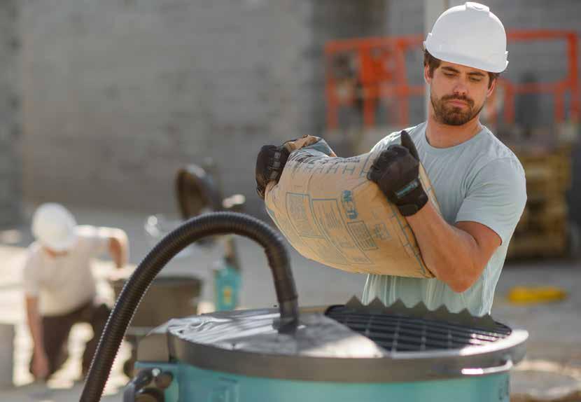 Sauberer Arbeitsplatz, saubere Luft! Klemmen Sie einfach die Staubabsaugung an den Rand des Eimers – das geht bei nahezu jedem Eimer. dust.EX kann mit den üblichen baustellentauglichen Entstaubern verbunden werden und sorgt so für ein staubfreies Arbeiten, während Sie befüllen oder mischen.